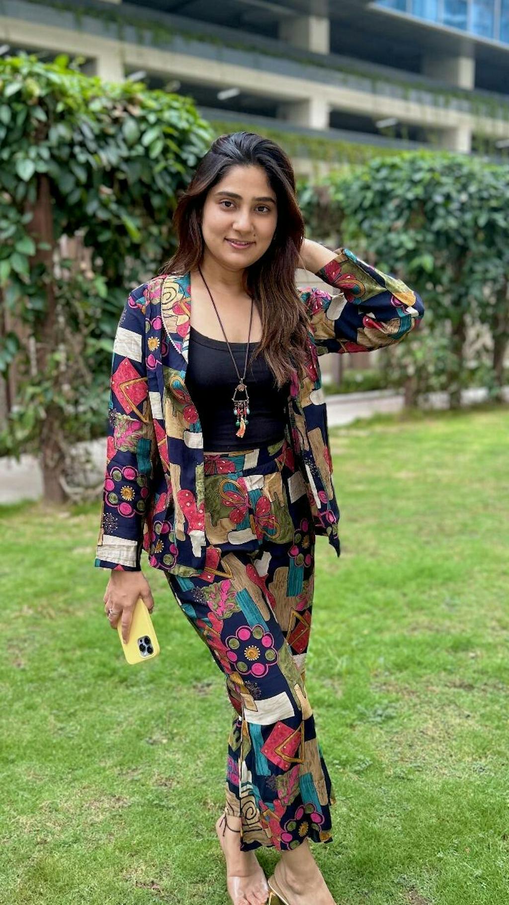 Stylist Tip: For a polished, evening-ready look, pair this set with silver drop earrings and classic black block heels.
