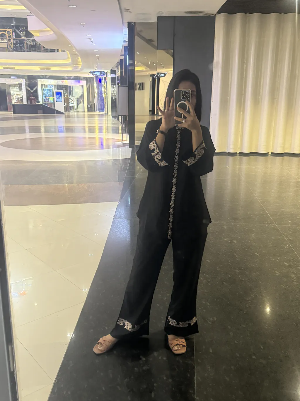 Black Floral Embroidered Viscose Rayon Co-Ord Set for Women | Claura